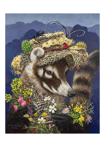 A Coati Mundi ran into a Darkling Beetle while out nosing around. “You smell weird,” he snorted.“Are you a clown?” retorted the bug, eyeing the shabby fedora with its odd assortment of fetishes.